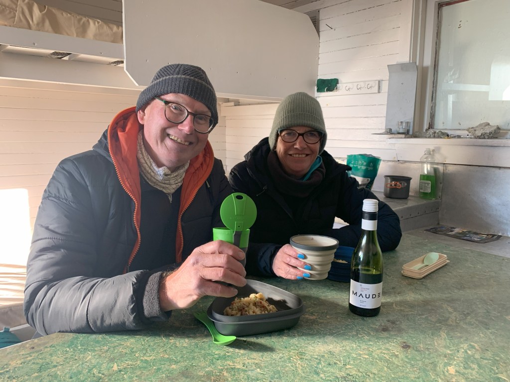 The six of us remaining began to settle in for our evening. Peter and I boiled some water and rehydrated our pasta. We toasted mum and Peter McCormack with a half bottle of Maude pinot noir. It had seemed like a good idea at the time to take a red wine, however I had not factored in that by the time we were drinking it, it was quite chilled.