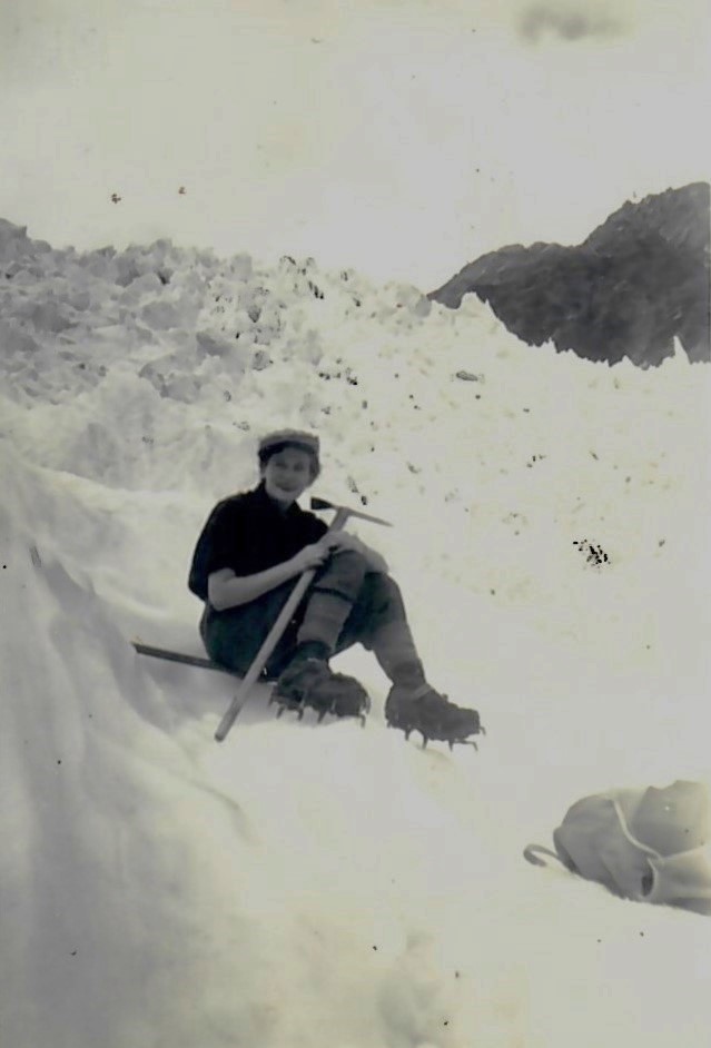Ena McDonald, my mother, aged 28, was born on a farm in Waipipi, on the Awhitu Peninsular. She attended Waipipi School and Epsom Girl’s Grammar. At age 15, she studied typing and bookkeeping at Brain’s Commercial College in Auckland. She moved to Christchurch in the late 1940s and joined the staff of the Registrar of Canterbury University College. She often went to the Hermitage at Mt Cook for the weekend and it was here that she developed a love of the mountains and learnt a little about alpine climbing. In April 1952, she planned to cross the Graham Saddle for the first time, with guide Peter McCormack.